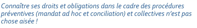 Connaître ses droits et obligations dans le cadre des procédures préventives (mandat ad hoc et conciliation) et collectives n'est pas chose aisée !